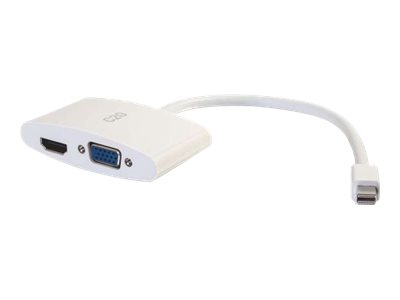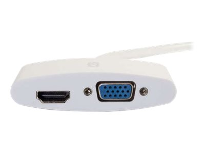 C2G 20cm Mini DisplayPort to HDMI or VGA Adapter Converter 4K UHD - White - Näyttösovitin - Mini DisplayPort uros to HDMI, 15 pin D-Sub (DB-15) naaras - 20.3 cm - suojattu - valkoinen - 4K-tuki