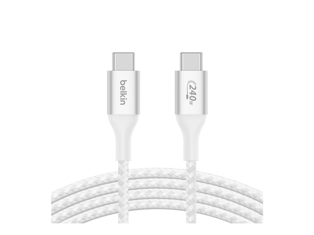 Belkin BoostCharge - USB-kaapeli - 24 pin USB-C (uros) to 24 pin USB-C (uros) - USB 2.0 - 1 m - virransyötön tuki jopa 240 W:n tehoon asti - valkoinen