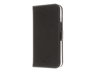 Insmat Exclusive - Läppäkansi matkapuhelimelle - aito nahka, polykarbonaatti, puuvillaompeleet, pahvi + paperi - musta malleihin Apple iPhone 14 Plus 650-3105