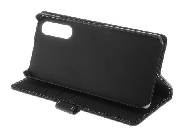 Insmat Exclusive - Läppäkansi matkapuhelimelle - nahka, kartonki + paperi + alumiinifolio - musta malleihin Sony XPERIA 10 V 650-3173