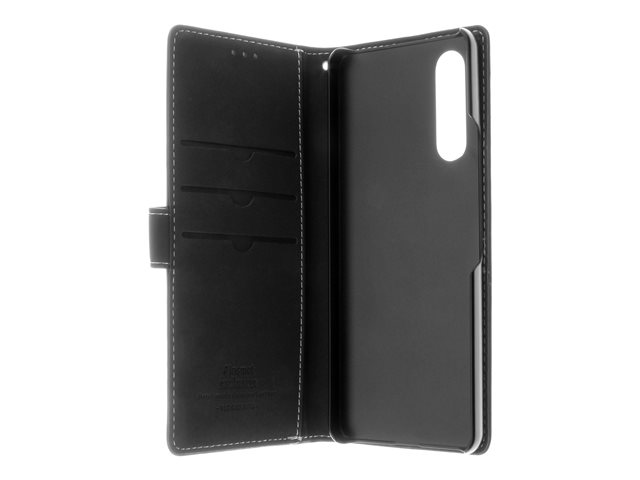 Insmat Exclusive - Läppäkansi matkapuhelimelle - nahka, kartonki + paperi + alumiinifolio - musta malleihin Sony XPERIA 10 V