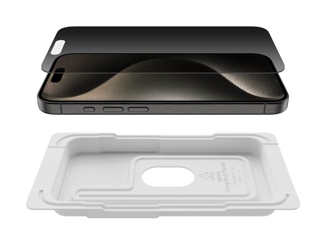 Belkin ScreenForce Pro - Näytön suojus tuotteelle matkapuhelin - 2.5D - lasi - yksityisyyssuodattimella - lasi malleihin Apple iPhone 15 Pro OVA149ZZ