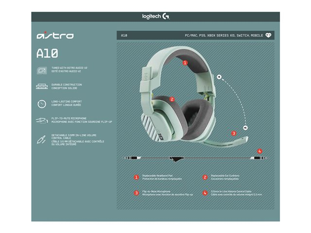 ASTRO Gaming A10 Gen 2 - Kuulokkeet + mikrofoni - täysikokoinen - langallinen - 3,5 mm jakkiliitin - minttu
