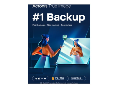 Acronis True Image Essential - Tilauslisenssi (1 vuosi) - 5 tietokonetta, rajaton määrä mobiililaitteita - lataus - Win, Mac, Android, iOS HOGASHLOS