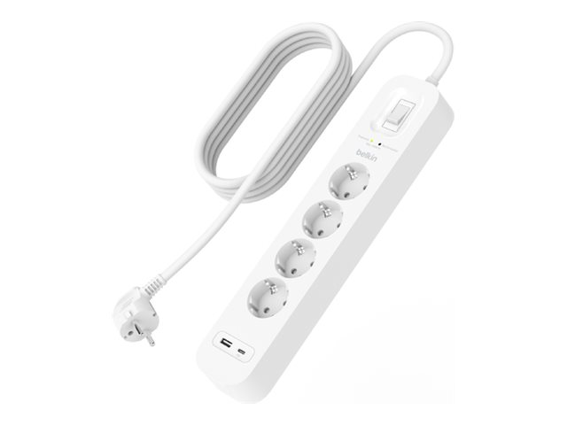 Belkin Connect - Ylijännitesuoja - USB-C- ja USB-A-porteilla - lähtöliittimet: 4 - 2 m johto